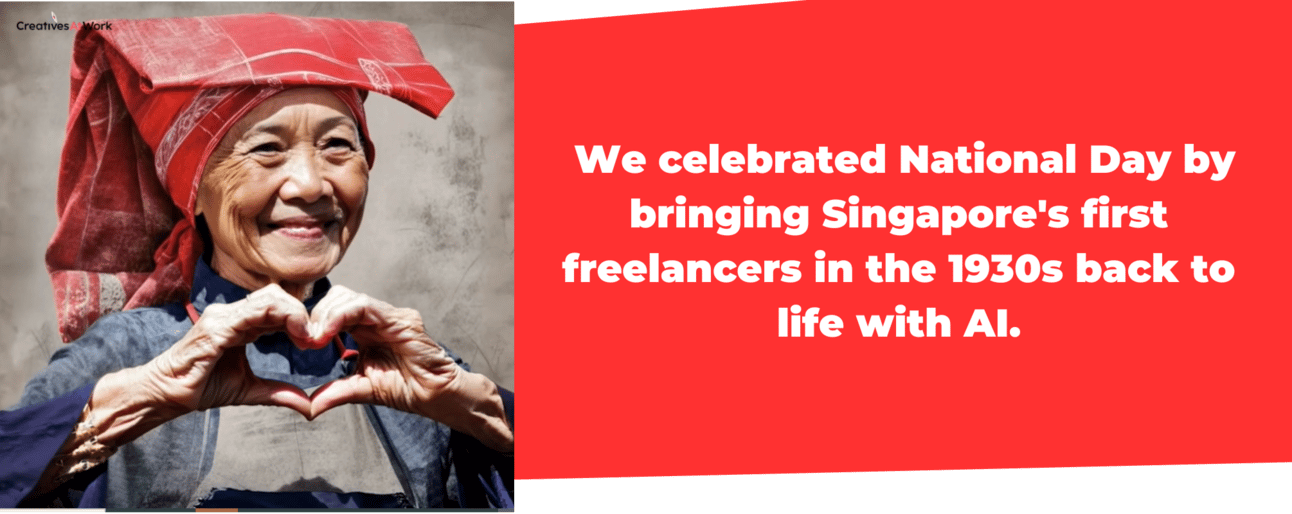 With all the hypes about AI, we decided to make it our ‘friend'. Hence this National Day we celebrated by creating an AI video that bring Singapore's first freelancers in the 1930s back to life. Their resilience, independence, and determination are the foundation of our nation's spirit and we hope to revitalized the memories of them. Catch it via our Social Media post.