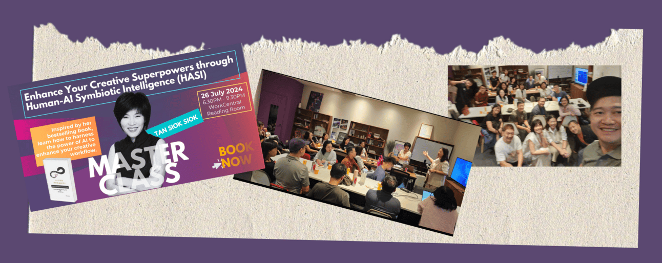 We have started a masterclass series about Empowering Your Creativity through Harnessing Human-AI Synergy in July 2024. Led by Tan Siok Siok, author of 'AI for Humanity' book. The first part was a masterclass sharing on Human-AI Symbiotic Intelligence about how you can integrate AI into your workflow and interact with it to help elevate your creative potential. Check out our Social Media post on it.