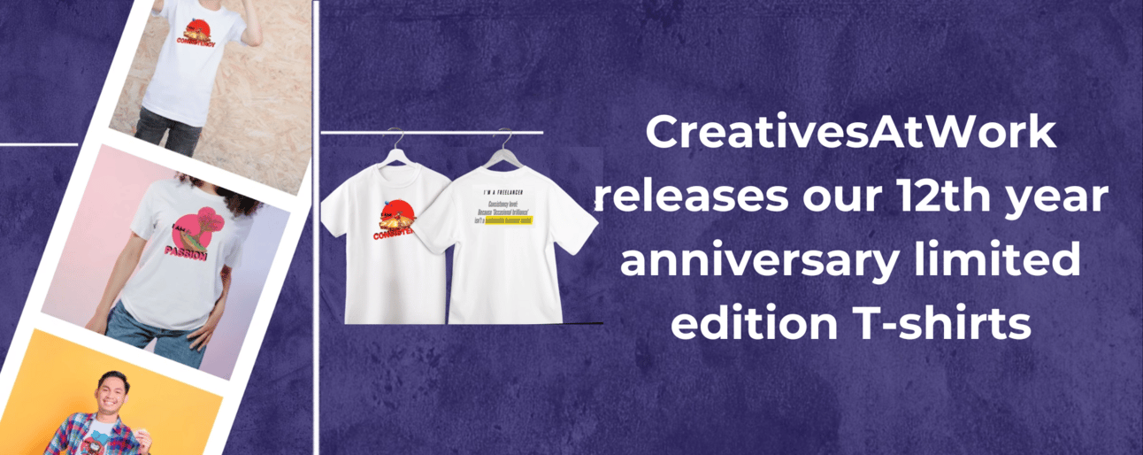 To celebrate our 12th year anniversary, CreativesAtWork releases our own limited-edition T-shirts featuring the 10 freelancer trait characters created for our 10th year anniversary. Each character reflects the important value and trait that define us as a freelancer. Pre-orders are open. Check out our online store https://store.creativesatwork.asia/