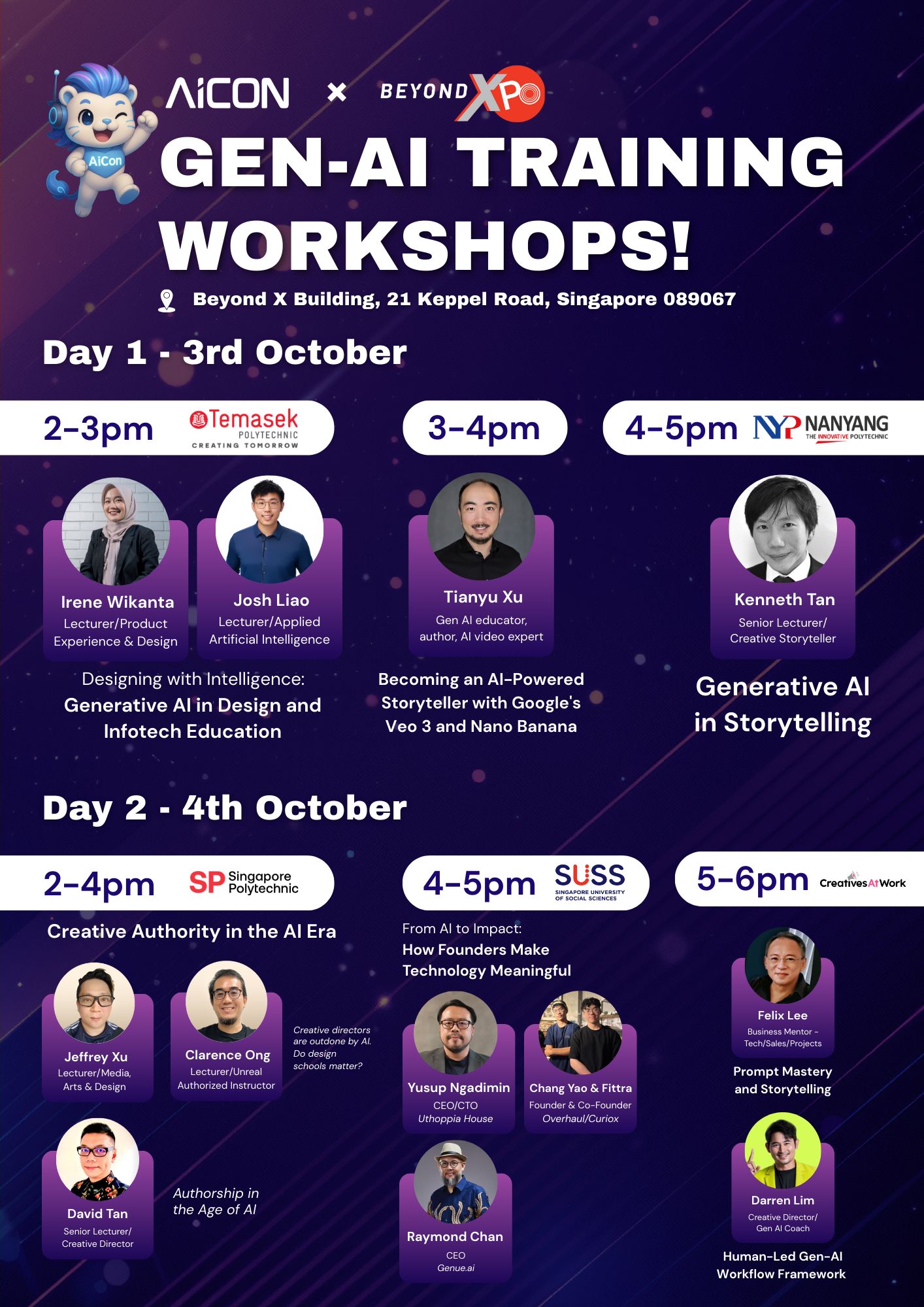Our upcoming AICON is designed specially for creatives, freelancers, and everyone who are curious to explore further and learn more. It is an immersive event that makes learning about AI both exciting and approachable. From insightful talks and panel discussions by tech founders and CEOs, to hands-on GenAI workshops by domain experts and academia, in addition with exhibition showcases and engaging activities like the GenTube Film Festival and cosplay competitions, there’s certainly something for everyone.